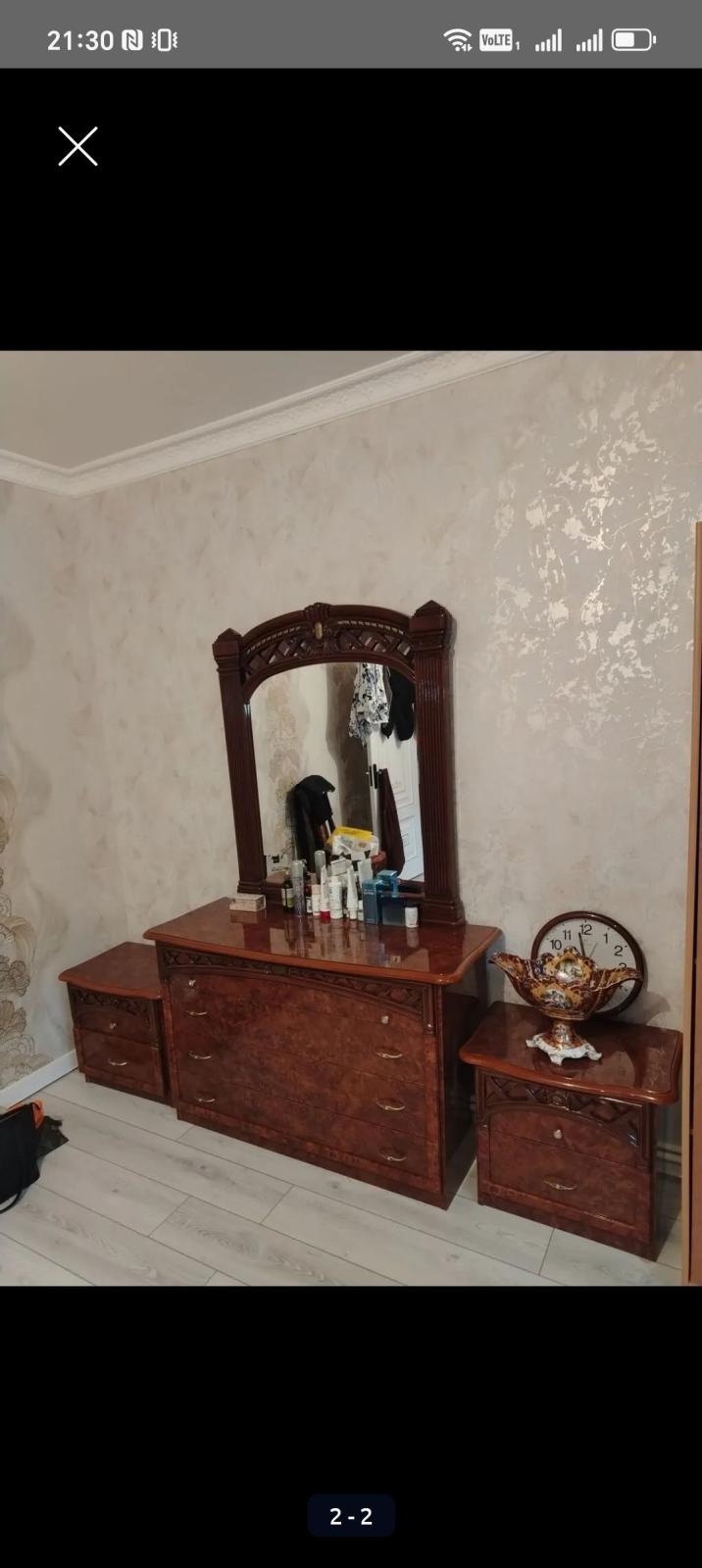 - Böyük güzgü – komod üzərinə quraşdırılan, sütunvari yanlıqlar və dekorativ taxta elementlərlə